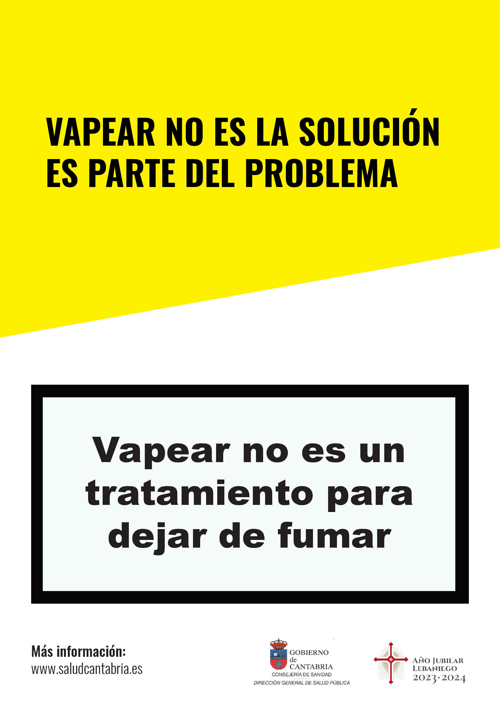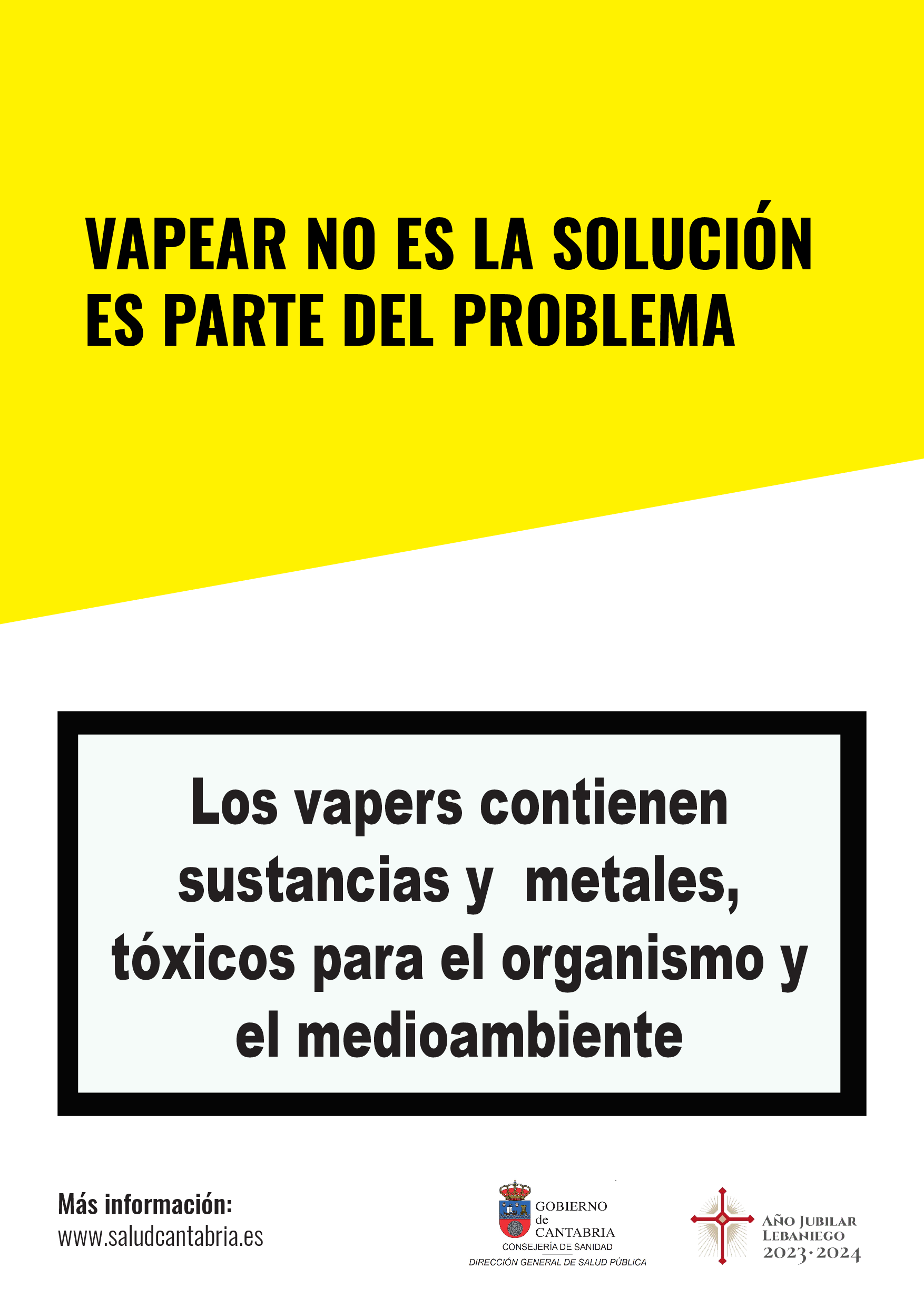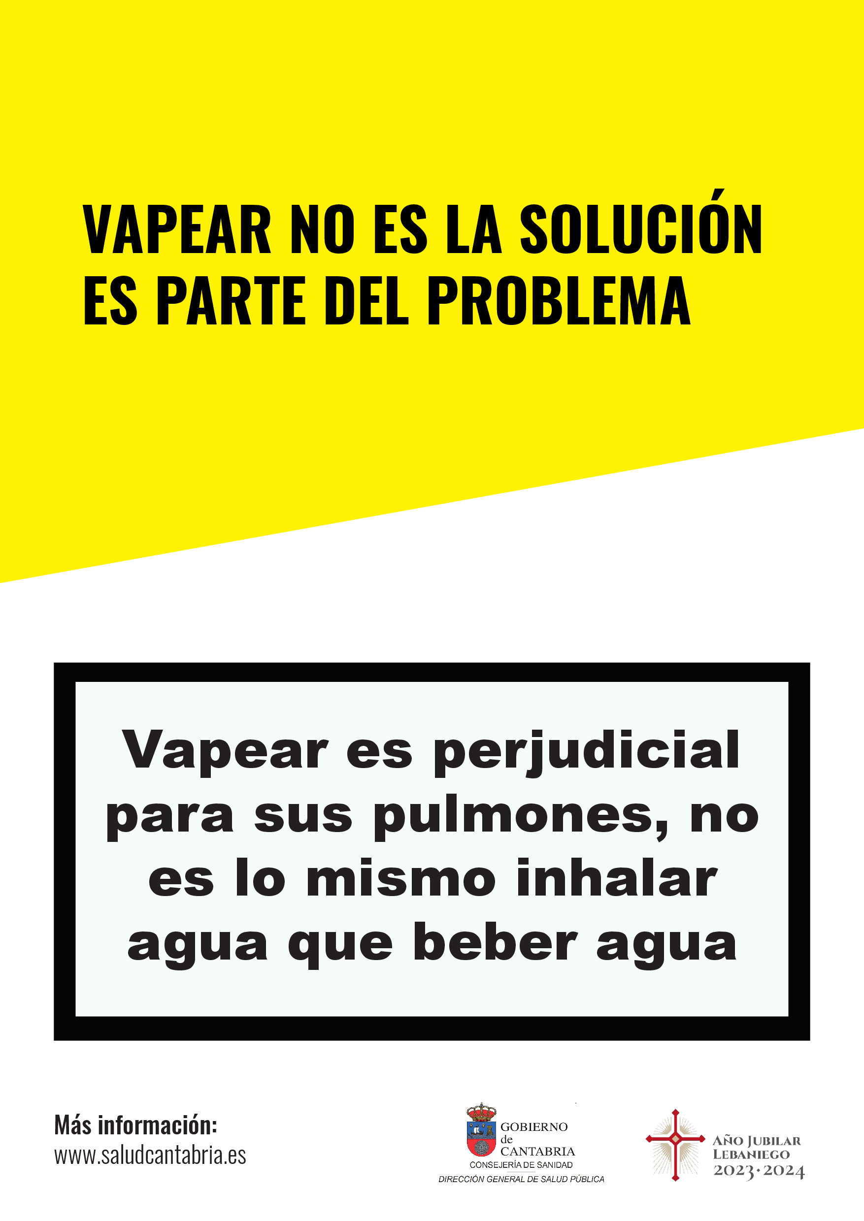 Este año, el 31 de mayo la Dirección General de Salud Pública ha elegido el lema "Vapear no es la solución, es parte del problema", para sensiblizar a la población de la importancia de no banalizar el uso de vaper o cigarrillos electrónicos, dispositivos que están acercando a los menores al consumo de tabaco, a la inhalación de sustancias tóxicas y a múltiples riesgos para su salud.